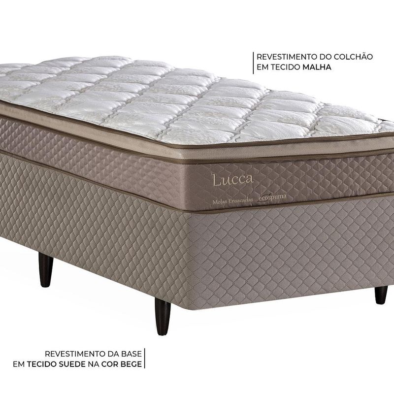 CAMA BOX SOLTEIRO HERVAL LUCCA, 66X88X188 CM, MOLAS ENSACADAS, SUEDE BEGE A Cama Box Solteiro Herval Lucca é uma ótima opção para compor a decoração de seu dormitório com conforto e elegância. O Colchão Herval Lucca conta com molas ensacadas que se ajustam ao seu corpo, proporcionando conforto às noites de sono. A Base Box Idea entrega suporte excelente ao colchão e sofisticação ao seu dormitório.