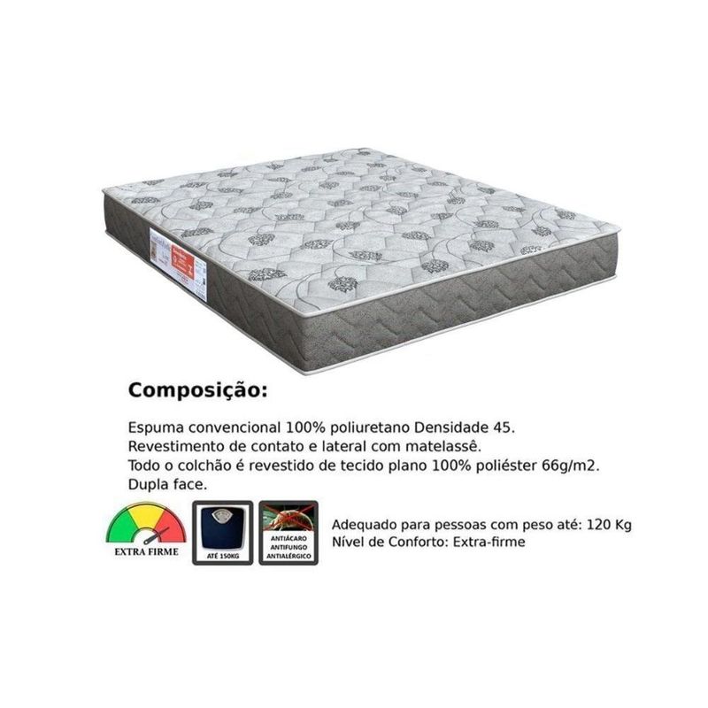 Cama Box Viúva: Colchão Espuma D45 Orthoflex Comfortpedic + Base Crc Suede Black (128x188)