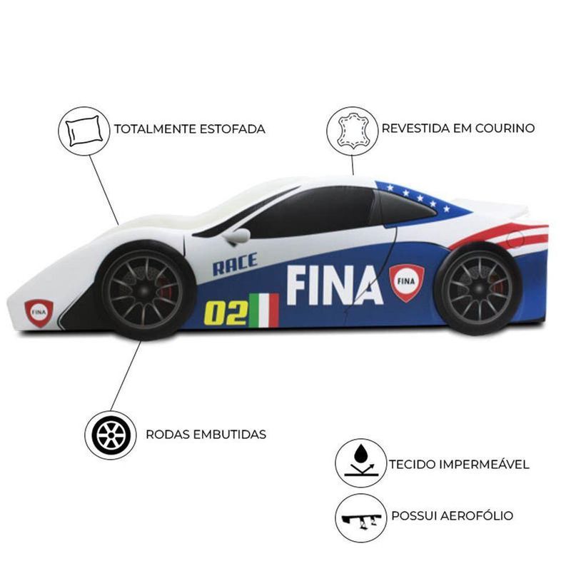 Cama Carro Jet AméricaParabéns você esta prestes a adquirir a Cama dos Sonhos!Única no mercado brasileiro com o inédito acabamento estofado,Sistema exclusivo, patenteado pela Cama Carro do Brasil.Entregamos em todo o Brasil.Desde 2003 realizando sonhos de criança.Diretamente das pistas americanas para o quartinho do seu filho!Que todo pequeno já sonhou em ser um piloto de Fórmula 1, isso sabemos.Mas o que queremos contar é que agora isso é possível!Chegou a nova Cama Carro Jet América, a cama que vai transformar o quartinho do seu piloto em umverdadeiro pit stop dos sonhos!Com ela o medo não chega nem no grid de largada, e a bandeirada indica que a diversão nunca termina.- Durante o dia, muitas aventuras que marcarão para sempre a vida do seu filhão.- Durante a noite, um sono tranquilo e seguro o aguardam, com laterais altas e estofadas que garantem aproteção em todas as curvas do soninho.- O colchão ideal para a Cama Carro Jet América é o padrão Solteiro: 1,88m x 0,88m x 0,14m.Nova Cama Carro Jet América, a Pole Position dos sonhos!ESPECIFICAÇÕES:Medidas da cama montada:Comprimento: 2,20 mLargura: 1,20 mAltura: 0,70 mCor padrão: BrancoPeso do produto: 80 kgPeso indicado: Até 100kg, se utilizado da maneira adequada.Material da estrutura: 100% Compensado Naval e madeira eucalipto tratado.Acabamento: Preparada com espuma e manda acrílica, totalmente estofada em courino e nylon.Design: Impressão digital. O Colchão ideal para a Cama Carro Jet é o SOLTEIRO: 1,88m x 0,88m x 0,14m.Por que a Cama Carro é incomparável?Cama carro totalmente estofada.Impressão digital exclusiva.Laterais da Cama Carro com 10 cm de espessura.Cama Carro original e patenteada.As rodas são feitas separadamente, sobrepostas nas laterais.A montagem da Cama Carro é simples e fácil.Atenção:O colchão não acompanha.Temos o colchão para venda.Consulte o custo de envio para sua região.A montagem é por conta do cliente.Entregamos para todo o Brasil.