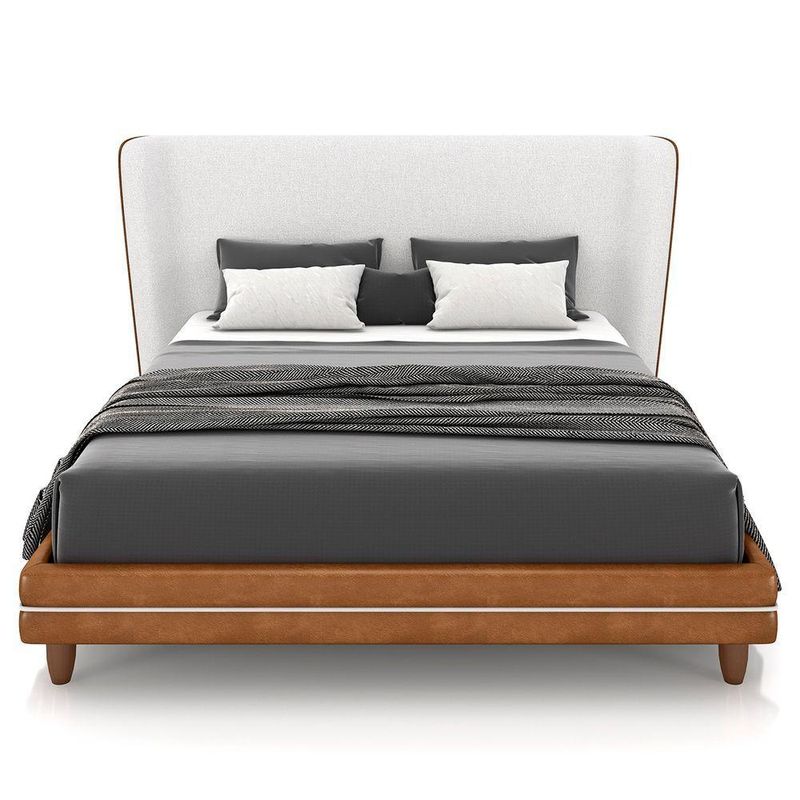 Cama Casal 140cm Com Cabeceira Many P02 Bouclê Off/caramelo - Mpozenato