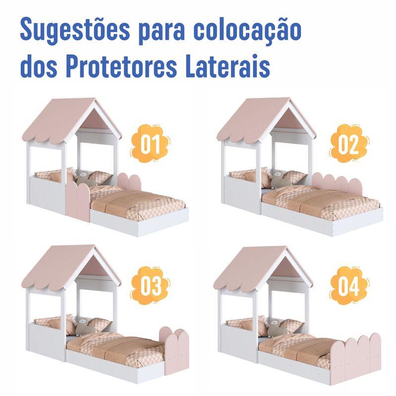 Móveis. O conceito Montessori traz o melhor do estilo para o quarto de bebê ou infantil. Um conceito lúdico para estimular a autonomia e aperfeiçoar o potencial criativo das crianças desde a primeira infância. Com grades laterais de proteção móveis e que permitem serem movimentadas ou trocadas de posição, garantindo praticidade e segurança. Telhadinho com cantos arredondados, propiciando também maior segurança. Colchão indicado: Solteiro 188 x 78cm.