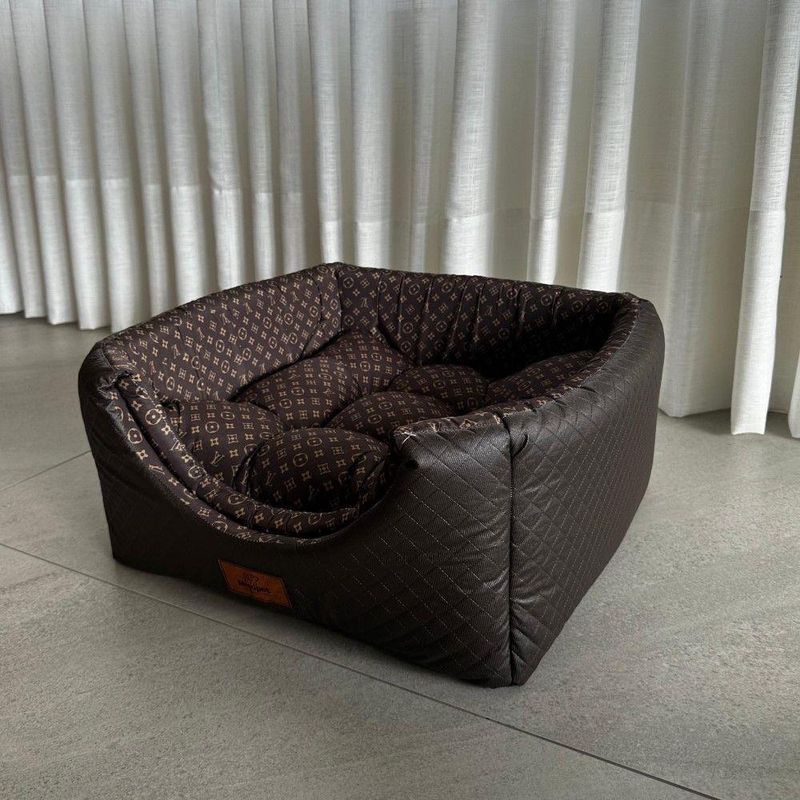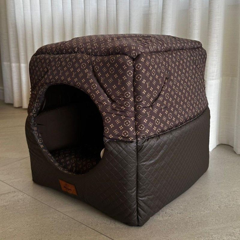 Cama Para Cachorro Toca Quadrada Em Corino + Poliéster Marrom Escuro Lv Grande (gg) 55 X 55 X 55 Cm