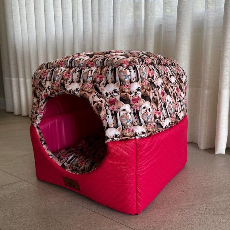 Cama Para Cachorro Toca Quadrada Em Corino + Poliéster Rosa Média (m) 40 X 40 X 40 Cm