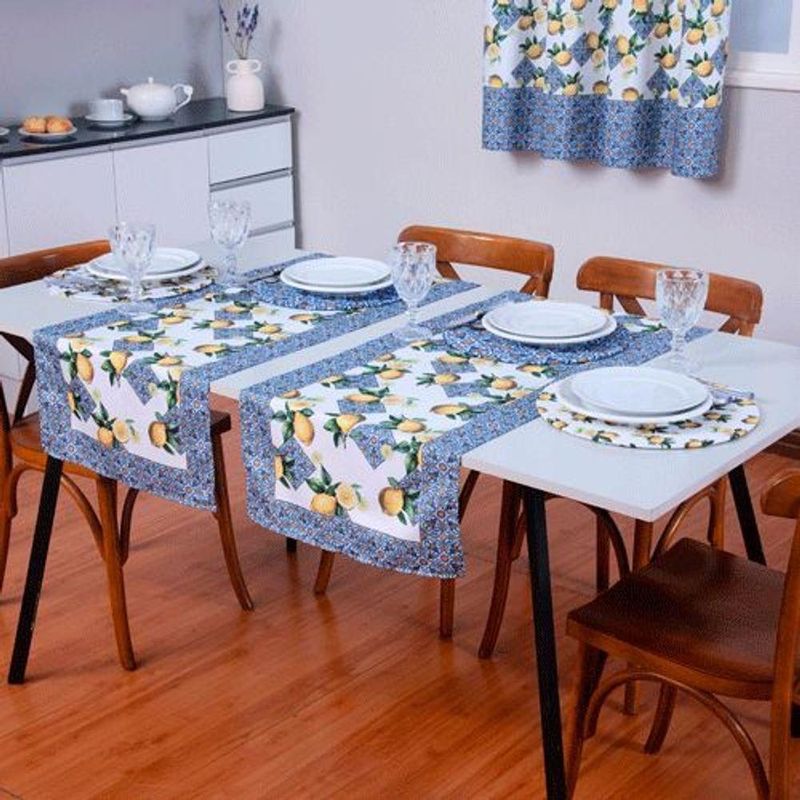 Caminho De Mesa Estampado Allegra 1 Peça 1,25m X 43cm 100% Poliéster - Limão