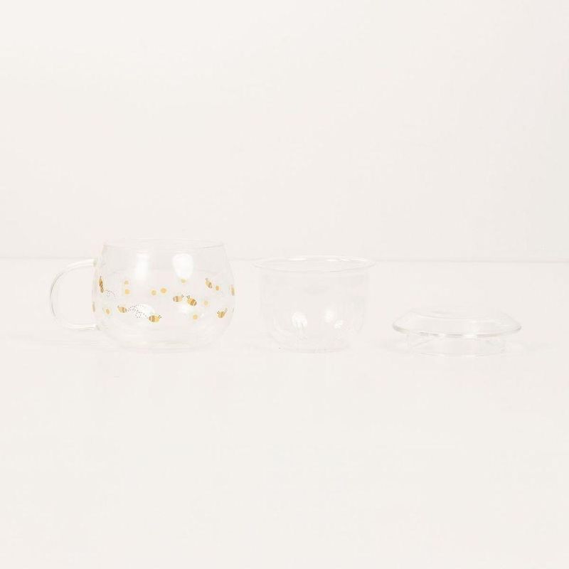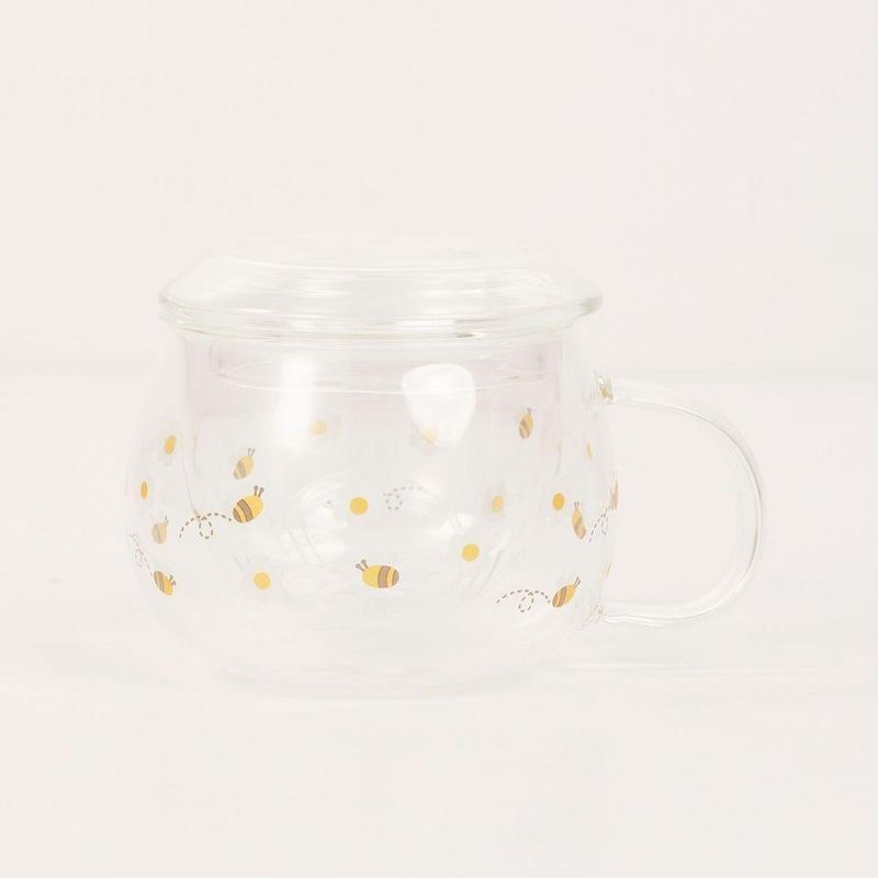 Toda em vidro (borossilicato) e contando com uma delicada estampa de abelhinhas e margaridas, ela traz: