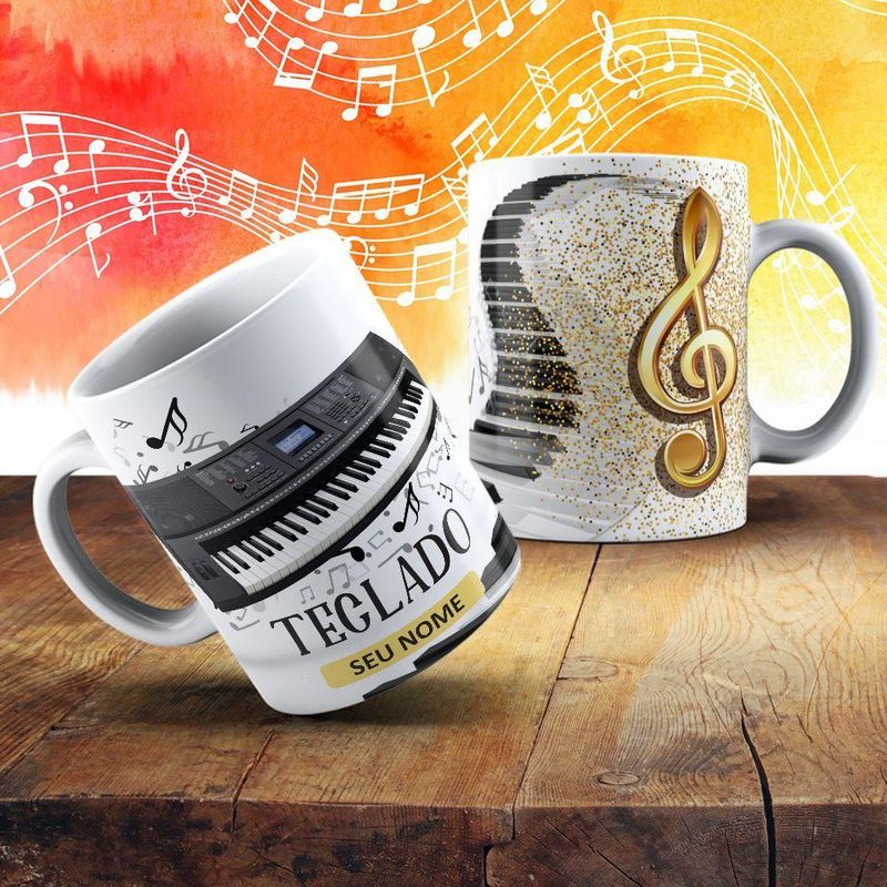 Caneca de Porcelana 325ml Personalizada com Estampa de Instrumentos Musicais Teclado -