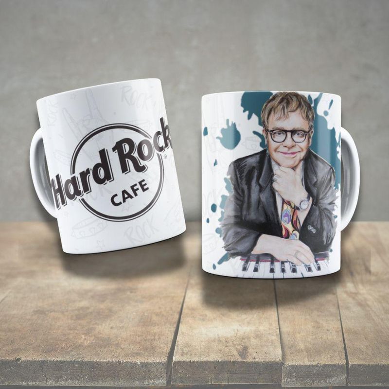 Caneca de Porcelana 325ml Decorada Ícones da Música Personalizada Elton John -