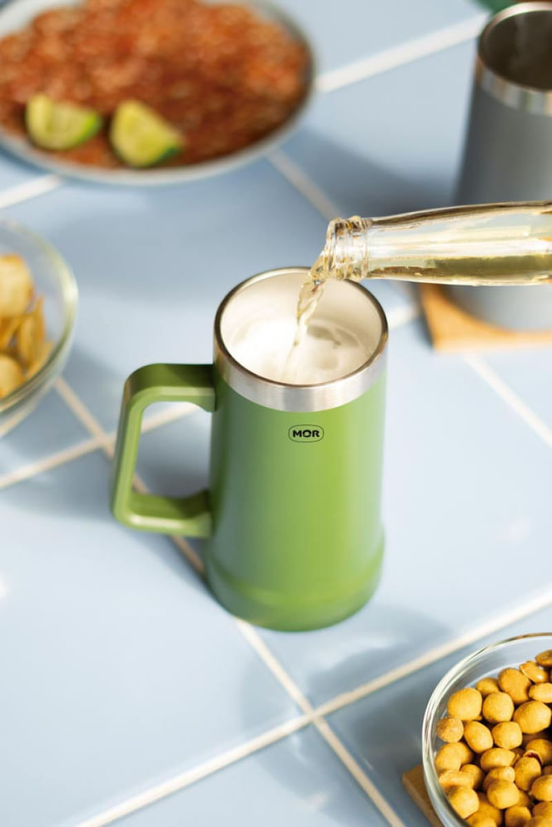 Se você é fã de uma cervejinha bem gelada, os encontros com a galera ficarão na medida certa com a Caneca Térmica 500ml Mor! Produzida em aço inox com isolamento térmico, armazena os líquidos quentes por 50min, gelados por 10h e com gelo por 12h. Com ela, não é preciso se preocupar em ficar secando o lugar de apoio toda a hora; pois não aquece a parede externa com bebidas quentes e não sua com bebidas geladas. A mais escolhida pelos amantes de chá, café, chocolate quente, cerveja, caipira, suco, refrigerante e água. A sua alça anatômica e confortável oferece mais apoio ao beber e ajuda a facilitar o transporte. Além disso, é a opção certeira para surpreender e presentear quem você ama, combinando estilo com utilidade! Disponíveis nas cores Preto, Verde e Inox.