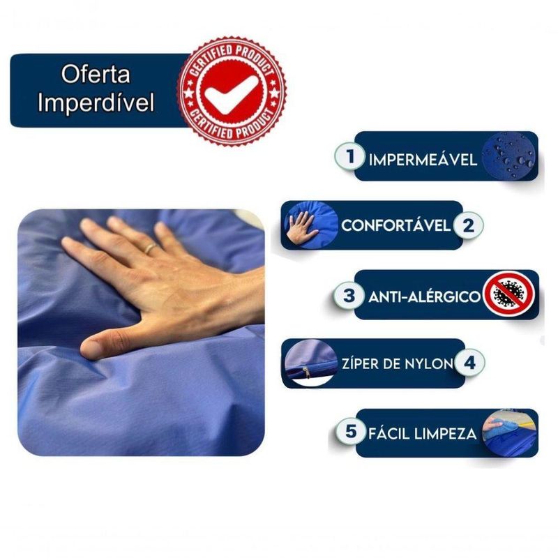 CAPA PARA COLCHÃO CASAL IMPERMEÁVEL ANTIALÉRGICA TIPO HOSPITALAR AZUL - 138x188x20cmCapa para Colchão Impermeável Casal tipo Hospitalar ideal para as medidas 138x188x20cm. Verifique as medidas de seu colchão antes de sua compra. Para outras medidas consulte-nos no campo pergunta para que possamos lhe orientar com o anúncio correto para sua compra.Confeccionada em Napa Bagum Premium de alta qualidade e com forro interno em malha de poliéster, esta capa transforma o seu colchão comum em um colchão hospitalar totalmente higiênico.Você terá muito mais praticidade, pois como veste o colchão como um todo, poderá utilizar seu colchão dos dois lados, aumentando ainda mais a vida útil de seu colchão, pois poderá realizar o rodízio de sua espuma e para higienizá-la na correria do dia a dia, basta utilizar um pano úmido com detergente neutro (sempre que julgar necessário) e sua capa estará limpa e seca rapidamente.Vem com um zíper que acompanha a largura e avança um pouco no comprimento para facilitar de vestir em seu colchão, garantindo assim que você coloque e retire facilmente sua capa.A capa é nas medidas 138x188x20cm e para sua compra selecione a capa nas mesmas medidas de seu colchão.Por ser uma capa totalmente higiênica, é recomendada pela vigilância sanitária e alergistas, podendo ser utilizadas em diversos seguimentos.A capa para colchão impermeável pode ser usada em:- Hospitais - Clinicas