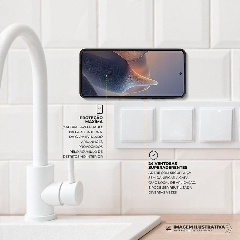 DESCRIÇÃO O Kit Capa Silicon Veloz + Suporte Ventosa de Silicone da Gshield foi criado para quem busca proteção, funcionalidade e praticidade no dia a dia. Combinando uma capa com toque suave e ajuste preciso com um suporte de fixação inovador, esse kit é ideal para quem valoriza mobilidade, conforto e versatilidade ao usar o smartphone em diferentes momentos da rotina. A Capa Silicon Veloz é feita com silicone de alta qualidade, oferecendo uma camada macia e ao mesmo tempo resistente contra riscos, arranhões e impactos leves. Seu encaixe é preciso, abraçando o aparelho com segurança sem interferir no uso dos botões e conectores. Leve e confortável, ela proporciona uma pegada firme, agradável e antiderrapante, perfeita para quem usa o celular com frequência durante o dia. O acabamento fosco com toque aveludado dá um visual moderno e discreto, que combina com qualquer estilo. Já o Suporte Ventosa de Silicone complementa a experiência com uma solução prática e inovadora para apoiar o celular em qualquer superfície lisa. Com 24 ventosas superaderentes e adesivo 3M na parte traseira, ele fixa com segurança o aparelho em vidros, espelhos, azulejos, telas e outras superfícies planas, sem deixar resíduos. Ideal para quem grava vídeos, realiza chamadas de vídeo, acompanha receitas ou consome conteúdo com mais conforto, ele permite que você tenha as mãos livres e o celular sempre visível. Compacto, reutilizável e disponível em cores vibrantes, é um acessório leve que pode ser transportado facilmente na bolsa ou no bolso. Juntos, a Capa Silicon Veloz e o Suporte Ventosa da Gshield oferecem proteção, estilo e conveniência em um kit completo que transforma a forma como você usa o celular — seja em casa, no trabalho ou em movimento. Um combo inteligente, funcional e indispensável para quem quer mais liberdade com segurança. ESPECIFICAÇÕES Capa Silicon Veloz Marca: Gshield Material: Silicone | Microfibra Dimensões: Dimensões exatas do aparelho Cor: Certificações: Us Military Ventosa - Marca: Gshield- Material: Silicone de alta resistência- Fixação: Adesivo 3M na parte traseira- Tipo de ventosas: 24 mini ventosas de sucção- Dimensões: 80 mm (altura) x 55 mm (largura) x 3 mm (espessura)- Cores disponíveis: Preto, branco, rosa, verde e roxo- Aplicação: Capinhas de celular, powerbanks, superfícies lisas (vidro, azulejo, espelho, acrílico etc.)- Peso aproximado: 10g COR: ÚNICA
