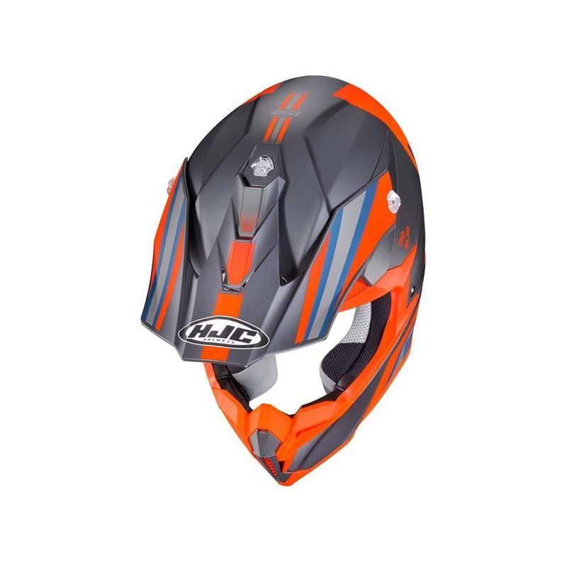O novo capacete off-road da HJC foi projetado para criar facilidade e conforto para o motociclista em um design agressivo e atraente. Uma porta ocular grande e reposicionada otimiza a visualização para visibilidade inferior. O ajuste da faixa de óculos de posição dupla ajusta-se ao conforto e preferência do motociclista. A viseira estendida bloqueia a luz solar e protege o motociclista de detritos e é flexível para permitir que o material dobre em vez de quebrar. O respiradouro de boca mutável e sem ferramentas permite uma limpeza fácil. O sistema de ventilação de canalização avançada “ACS” permite fluxo de ar frontal para trás para liberar o calor e a umidade para cima e para fora.