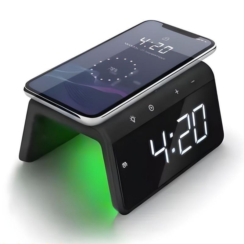 Com a Base de Carregamento Sem Fio 3 em 1 com Relógio e Luminária, você une praticidade, tecnologia e sofisticação em um só produto. Ideal para transformar sua rotina com mais eficiência e estilo.