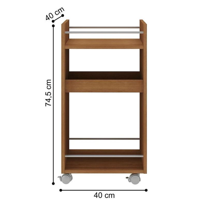 O Carrinho bar é perfeito para qualquer ambiente, é um móvel compacto e funcional!Feito em MDP 15mm. Possui 1 prateleira e 2 nichos e 4 rodízios facilitando o manuseio do produto.Medidas do Carrinho bar:Altura: 74,5 cmLargura: 40 cmComprimento: 40 cm