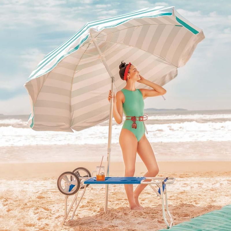 O Carrinho de Praia com Avanço para Caixa Térmica vai tornar seu verão ainda mais prazeroso com menos esforço! Além de carregar tudo o que precisa para curtir um dia na praia, seu carrinho se transforma em uma prática mesa com quatro encaixes para copos ou latas que chegarão geladinhas na sua caixa térmica. Diferenciado, conta com espaço para transportar seu guarda-sol, cadeiras, esteira e também sua caixa térmica. Manter os alimentos e bebidas bem conservados ficou mais fácil. Além disso, o carrinho ainda vem com uma bolsinha porta-objetos em PVC para você guardar seus pertences pessoais, como chave, óculos, dinheiro e o que mais for necessário. Suas rodas grandes garantem ótimo desempenho na areia e sua estrutura produzida pela Mor, em alumínio de excelente qualidade e tampo em polipropileno garantem durabilidade, já que seu carrinho não enferruja, mesmo em regiões litorâneas. Para maior segurança, acompanha corda elástica com gancho para fixar seus pertences durante o transporte. Resistente, suporta até 20 Kg distribuídos e vai acompanhar você por muitos veraneios!