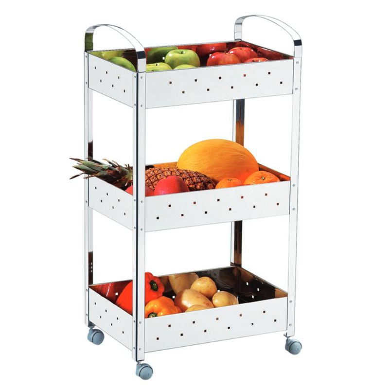Uma linda maneira de decorar a sua cozinha, a sua sala, o seu banheiro ou o seu quarto e três prateleiras inteirinhas para colocar o que você quiser. O organizador de inox da linha Suprema tem um design moderno, que se adapta a qualquer ambiente ou estilo de decoração. Além disso, o produto é super funcional e lhe ajuda a otimizar espaço e organizar a casa. Suas três prateleiras suportam até 50kg e as rodinhas facilitam o seu manuseio. Feito em aço inox, o organizador é resistente, fácil de limpar e tem 40x28x77cm de dimensão.