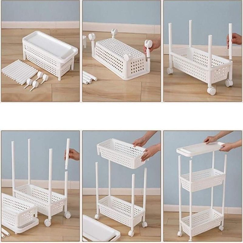 O Carrinho Organizador 3 Prateleiras Desmontável Carrinho desmontável que economiza espaço.Unidade de armazenamento com 3 prateleiras adequadas para alimentos, acessórios de banho, cosméticos, produtos de cuidado e livros, entre outros.Limpeza robusta e fácil com estrutura em PP durável; basta lavar as manchas na água.Montagem fácil e rápida, sem a necessidade de parafusos ou ferramentas; basta encaixar a moldura com conectores de plástico para completar a montagem. Características Principais:Material resistente em PP, fácil de limpar e montar.Racks de armazenamento classificados para uma organização eficiente.Design de economia de espaço para otimizar o ambiente.Tampa opcional para armazenamento conveniente de garrafas grandes.Ideal para uso em cozinhas, banheiros, salas, quartos, entre outros espaços. Detalhes Técnicos:Nome do produto: EstanteCor do produto: BrancoMaterial: PP (polipropileno)Número de camadas: Três camadasEstilo: Simples Características do produto: Material durável, acabamento requintado, durabilidadeEspaços adequados: Restaurantes, cozinhas, banheiros, entre outros. Especificações:Tamanho: 48X22X77cmDesign hoco à prova de umidade para manter os itens secos.Rodas inferiores giratórias de 360° para facilitar o movimento.Armazenamento multifuncional para diferentes ambientes.Economia de espaço e fácil de mover.Este carrinho organizador oferece uma solução eficaz para a organização, economizando espaço e tornando mais acessíveis os itens do dia a dia. Sua estrutura robusta e design versátil o tornam adequado para várias necessidades de armazenamento em diferentes partes da casa ou escritório.