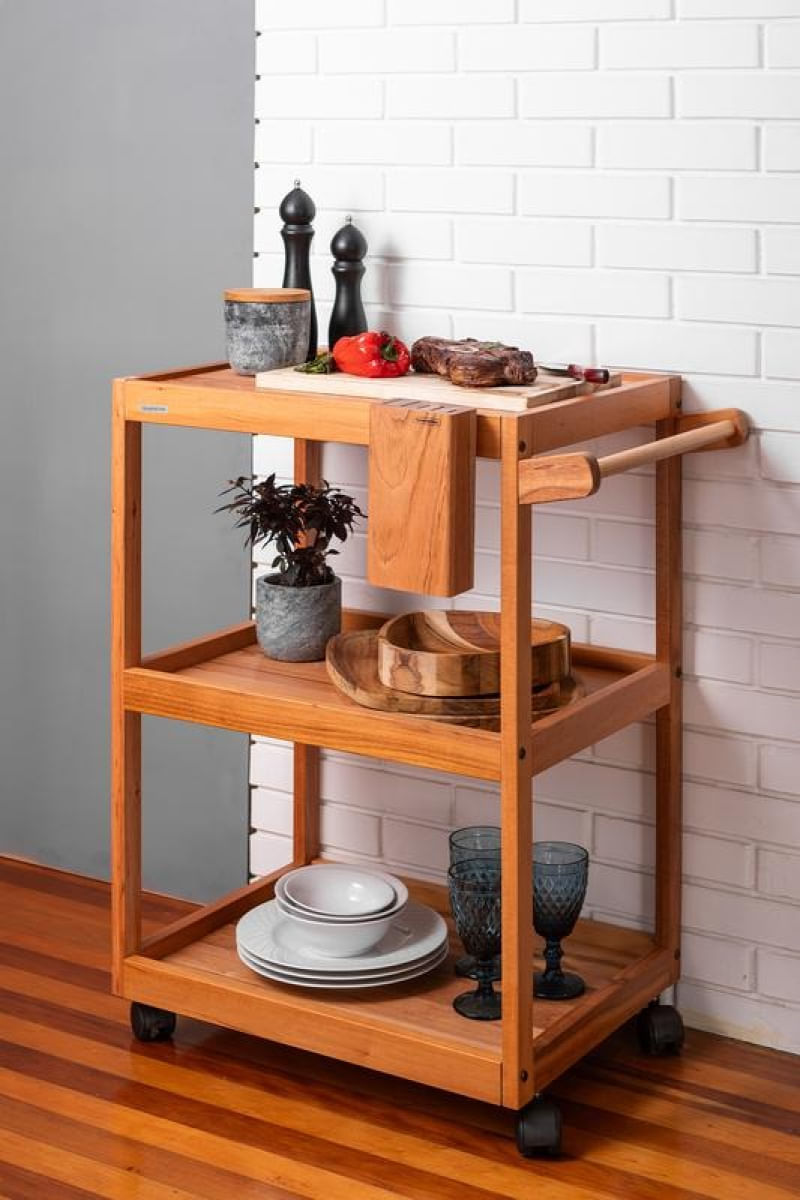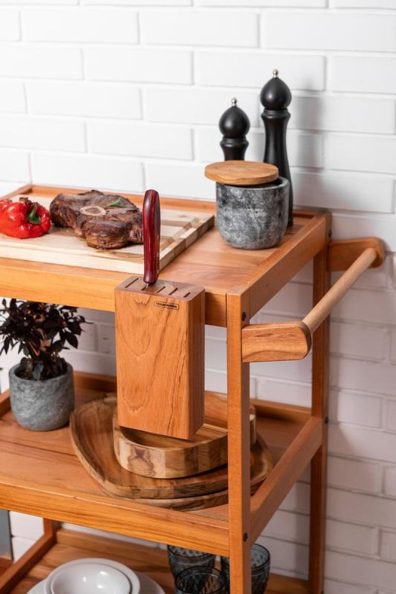 Praticidade é a característica que define o Carro de Apoio Tramontina em Madeira Muiracatiara FSC com Cepo. Pensado especialmente para quem busca servir os convidados com elegância e facilidade, ele é a peça que faltava na sua cozinha ou área de lazer, ideal para apoiar refeições, acompanhamentos e utensílios com muito mais organização. Produzido com madeira de origem responsável e acabamento sofisticado, ele ainda dá um toque de modernidade ao ambiente, tornando cada momento mais funcional e cheio de estilo.