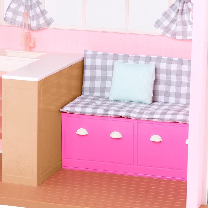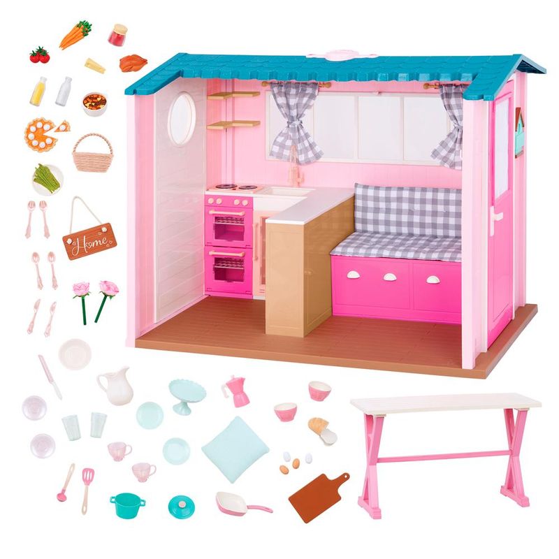 A Casa de Campo Our Generation é o playset perfeito para quem adora criar histórias cheias de aventura e encanto! Com design aberto e rico em detalhes, essa casinha para bonecas de 46 cm oferece uma experiência completa de brincadeira, com móveis, decoração e sons realistas de animais como gatinho e galo. Prepare refeições deliciosas na cozinha equipada com mais de 45 acessórios, incluindo mini geladeira e fogão que abrem, além de espaços para organizar todos os utensílios. Quando a diversão no campo acaba, o banco se transforma em uma cama retrátil para garantir o descanso das bonecas após um dia cheio de descobertas. Com porta que abre e decoração charmosa, a Casa de Campo Our Generation é o cenário ideal para estimular a criatividade, o cuidado e a imaginação, tornando-se o presente ideal para colecionadores e pequenas aventureiras que querem explorar o mundo Our Generation.