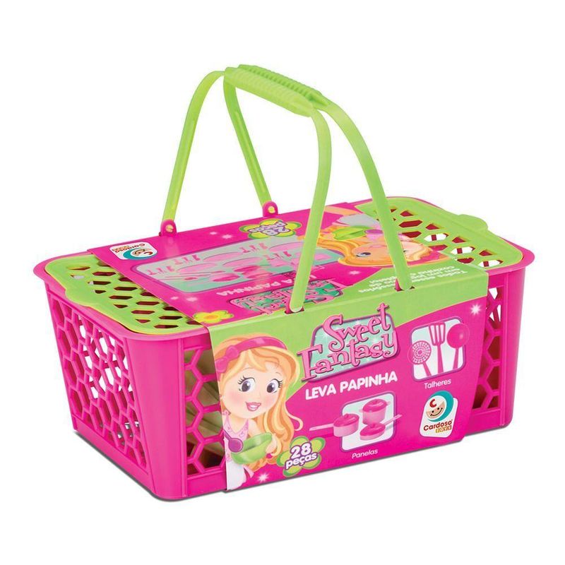 A Cestinha Leva Papinha Cardoso é um brinquedo perfeito para as meninas que adoram ajudar na cozinha. Uma cestinha ótima para brincar de piquenique. Vêm com jogo de panelas, pratos, jarra, copos e utensílios, para deixar a brincadeira muito mais divertida.