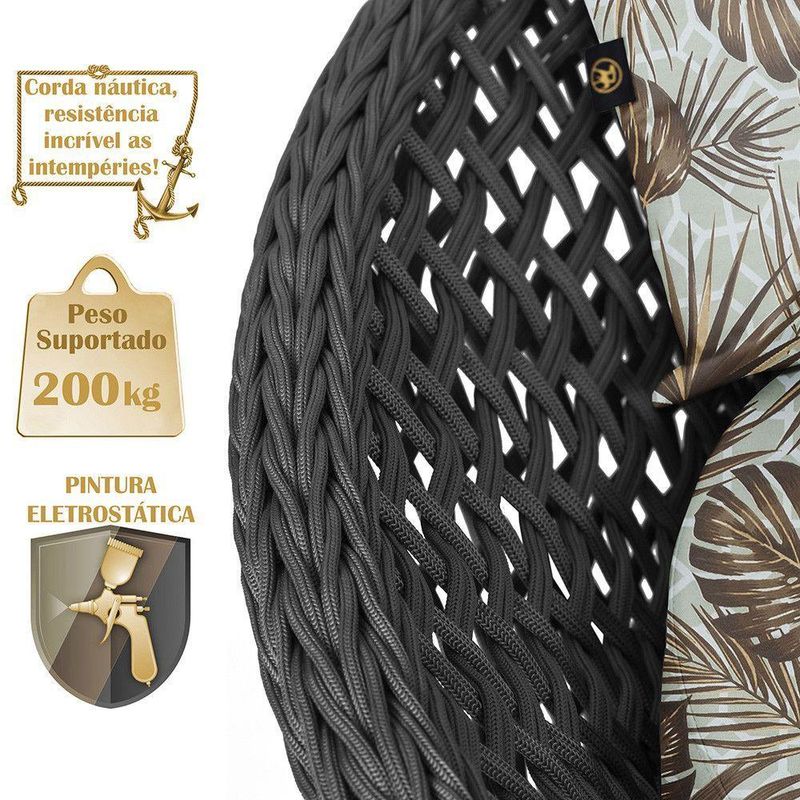 A trama artesanal em corda nautica adiciona um toque moderno e elegante, alem de proporcionar flexibilidade e conforto inigualaveis. Para completar, o estofado em tecido impermeavel assegura praticidade e bem-estar em qualquer ambiente, seja na area externa ou interna.