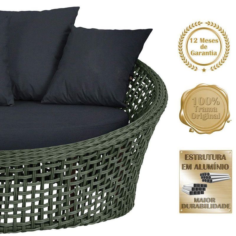 A trama artesanal em corda nautica adiciona um toque moderno e elegante, alem de proporcionar flexibilidade e conforto inigualaveis. Para completar, o estofado em tecido impermeavel assegura praticidade e bem-estar em qualquer ambiente, seja na area externa ou interna.