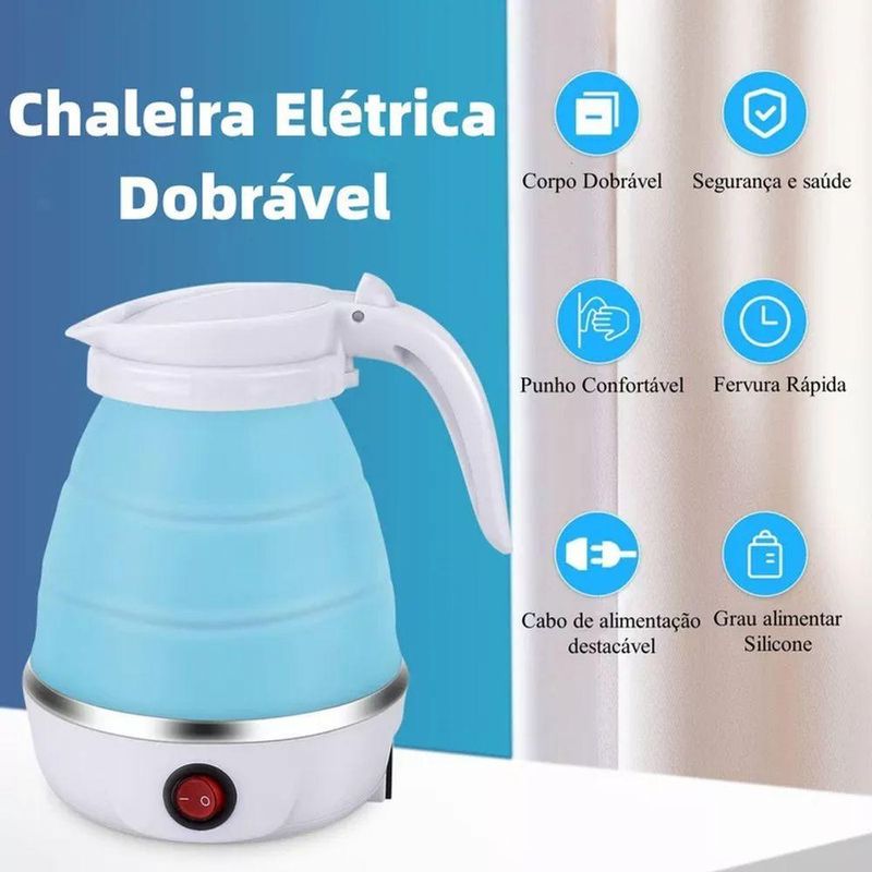 Inclui: Chaleira de viagem dobrável (600ml), cabo de alimentação, instrução