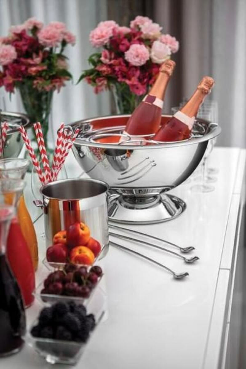 Com a Champanheira Tramontina em Aço Inox com Suporte para 4 Garrafas 36 cm de diâmetro 12,4 L da linha Service, servir champagne ficou ainda mais sofisticado. Com acabamento em brilho e um desing elegante e prático, essa peça é indispensável para deixar o happy hour com os amigos mais elegante ou impressionar os clientes mais exigentes. Seu uso também é próprio para bufês ou eventos que exijam praticidade e alto nível.