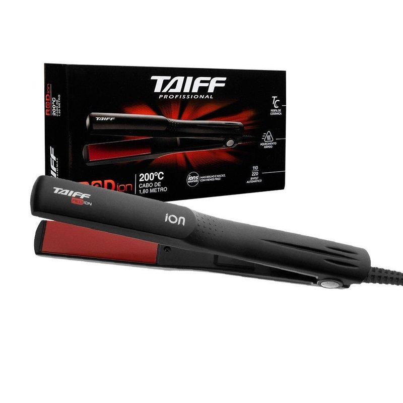 Precisando de uma chapinha fácil de usar no dia a dia? Apresentamos a Chapinha Red Íon, que conta com design ergonômico e a qualidade da marca Taiff. Possui íons negativos que deixam os cabelos mais macios e sedosos, e o perfil de cerâmica protege os fios e facilita o deslizamento. O Sistema dual transmission mantém a temperatura da chapa constante através da reposição instantânea de calor e a tecnologia PTC garante que a temperatura não oscile, resultando em maior segurança e saúde aos seus fios. Superleve, ergonômica e com 200 °C, esta chapa é ideal para quem precisa dos cabelos lisos todos os dias. Cabo de 1,80 metro de comprimento é perfeito para ser utilizado em espaços menores, dando a você mais mobilidade e praticidade para finalizar seus penteados. Tem bivolt automático, chave de liga e desliga. NA Voltagem: 127V