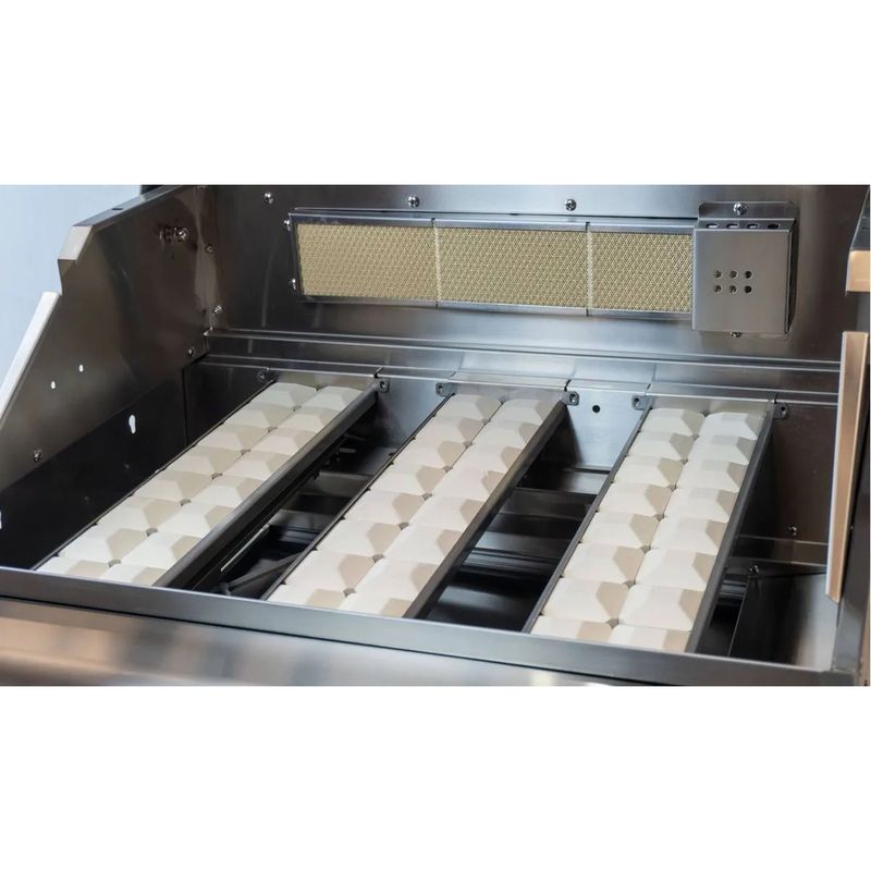 Características:Abertura da tampa de 95°Rack de aquecimentoGrelhas em aço inox 8mmQueimadores “Cast Steel” em ferro fundidoQueimador Infravermelho traseiroLâmpada LEDPronto para embutirInox 304. Resistente a oxidaçõesGás GLP podendo ser transformado em GNPedras cerâmicas. Conserva o sabor do churrascoManípulos com Led indicativo. Vermelho: ligado / Azul: desligadoTermômetro externo. Indica a temperatura do interior1 ano de garantia