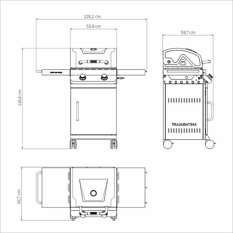 Prepare cortes impecáveis e surpreenda com sabores marcantes. Com a churrasqueira a gás TGP 2400 Tramontina, você tem potência, precisão e mobilidade para assar carnes suculentas com facilidade. Produzida em aço inox, conta com queimadores de acendimento automático, tampa com termômetro integrado para controle da temperatura e grelha de ferro fundido esmaltado, que distribui melhor o calor. As rodas resistentes e alças de silicone facilitam o transporte, garantindo liberdade para churrasquear onde quiser. Um equipamento que valoriza seu preparo e desperta o apetite de todos ao redor.