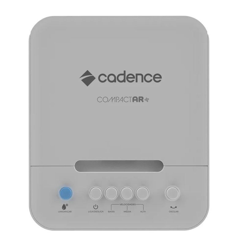 Descricao Climatizador de Ar Cadence Compactar 8,4LCod. Prod: CLI530O Climatizador CompactAr Cadence e o companheiro pratico e ideal para quem vive em movimento. Compacto e desmontavel, basta um click para desencaixar e transportar com mais facilidade. Sao 3 funcoes para climatizar todos os ambientes da sua casa de forma economica, pratica e saudavel, com filtro de ar.Desmontavel e supercompacto Facil de transportar e guardar.3 EM 1 - CLIMATIZA, VENTILA E UMIDIFICAUm so equipamento para todas as funcoes.3 VELOCIDADESMais controle para o ajuste ideal.BASE COM RODINHAS E ALCALeve pela casa toda com facilidade.8,4 - TANQUERefrigeracao por longos periodos sem interrupcao.60WMuito mais economico que ar condicionado.FUNCAO OSCILARDistribuicao do ar em todo o aposento.PAD COOLINGResfriamento natural por evaporacao.Dicas de Uso:Para um maior resfriamento, adicione gelo ou um recipiente com gel congelado ao reservatorio de agua. Certifique-se de que o nivel de agua nunca ultrapasse o maximo estabelecido no reservatorio.*Imagens meramente ilustrativas.Especificacao Tecnica Modelo CLI530-127Tensao 127VPotencia 60WConsumo 0,060KW/HDimensoes [LxAxP]230x600x250mmGarantia (meses) 12 mesesPeso4,645 KgCodigo de barras7898700219104