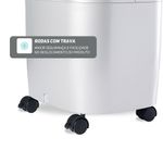 E na hora de guardar, ele conta com um dreno de esgotamento de água para um prático esvaziamento, sem fazer aquela molhadeira e com reservatório compactável você consegue armazenar seu climatizador em qualquer cantinho da sua casa!