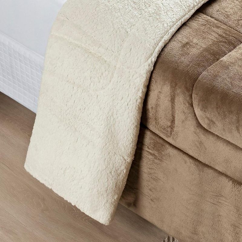 Coberdrom Sherpa E Flannel Everest King Manta Alta 150g 01 Peça - Caqui