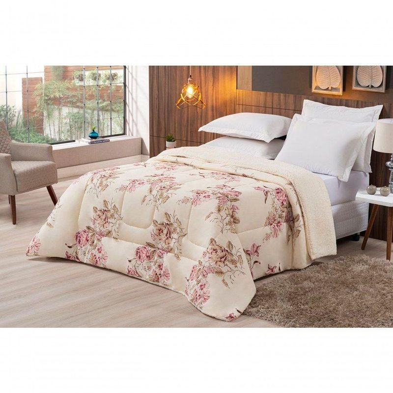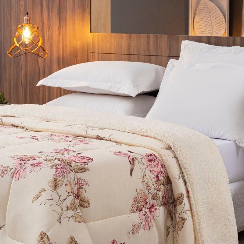 Coberdrom Sherpa/percal 180 Fios Estampado King Gran Moratta 01 Peça - Caqui Floral