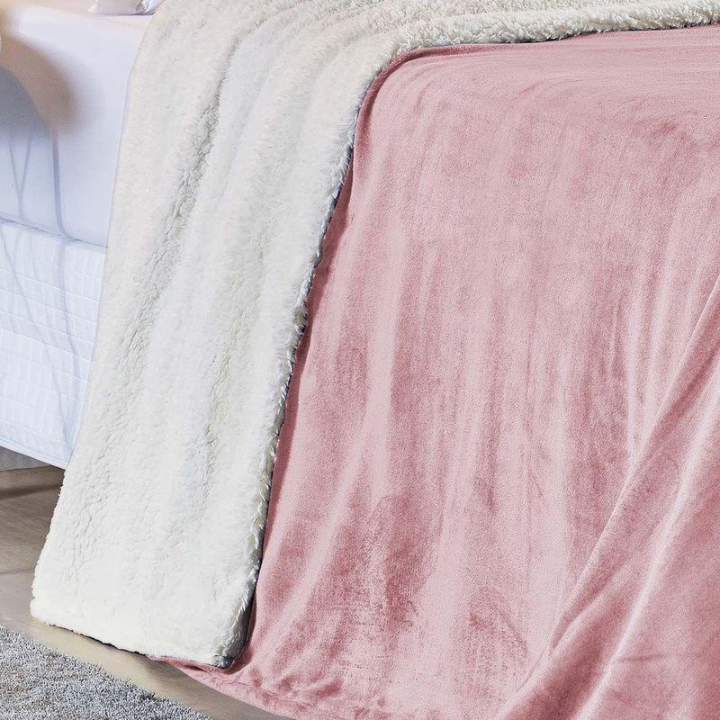 Cobertor Casa Scarpa Fênix King Sherpa Pele De Carneiro + Mantinha Flannel - Rosa
