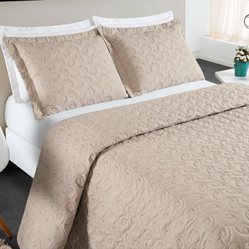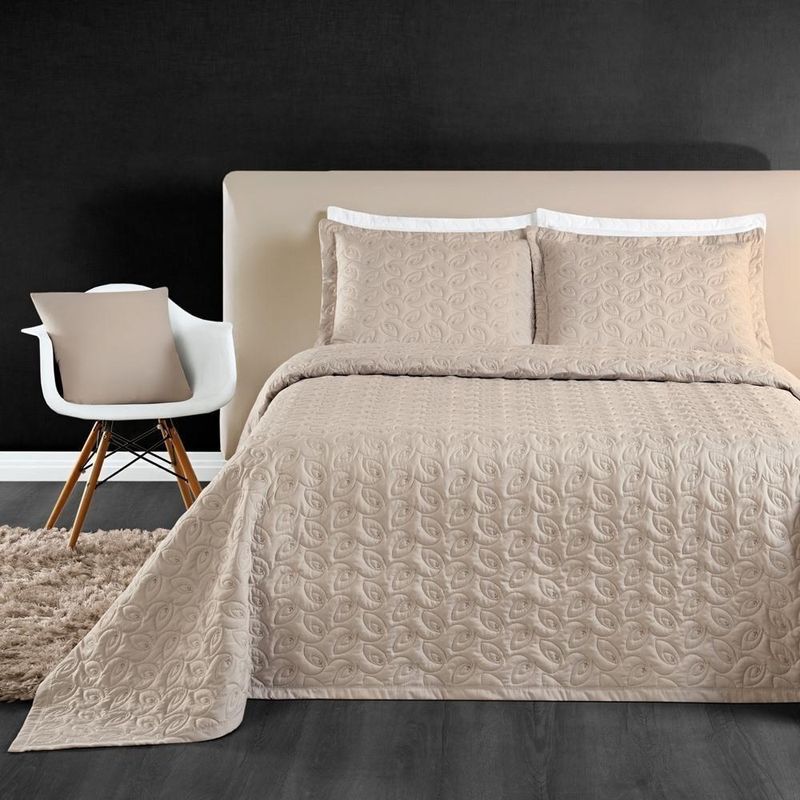 Cobre Leito 200 Fios Bordado ágata King 03 Peças - Cáqui