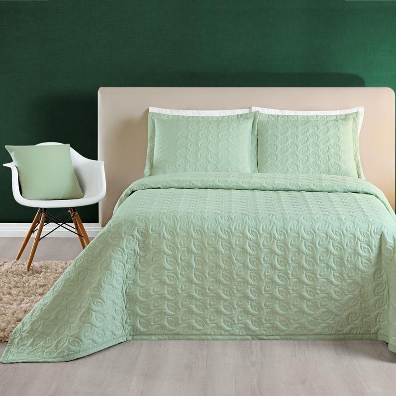 Marca: Bia Enxovais | Estampa: Não se Aplica | Medidas: 01 Cobre Leito 2,60m x 2,40m02 Porta travesseiros 80cm x 55cm (medida útil 70cm x 50cm) | Número de Peças: 03 Peças | Material: Poliéster | Cor Predominante: Verde | Cama Indicada: Queen