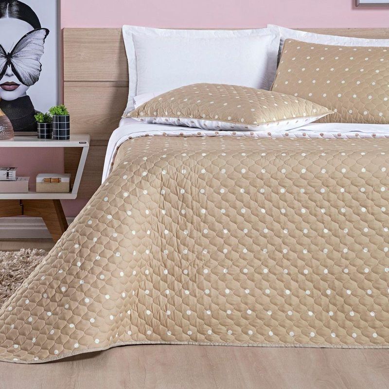 O Cobre leito Petit Poá possui tecido micro percal 200 fios com estampa clássica de bolinha, é totalmente matelado, dupla face, pode ser usado dos dois lados, acompanha porta travesseiros. Produto composto por: 01 Cobre leito 2,80m x 2,40m02 Porta travesseiros 70cm x 50cm Composição: Tecido: Superior e Inferior 100% PoliésterEnchimento: 100% Poliéster