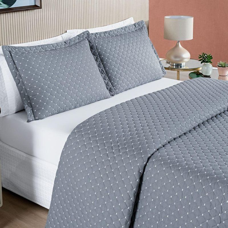 Cobre Leito 200 Fios Queen Ravena 03 Peças - Cinza