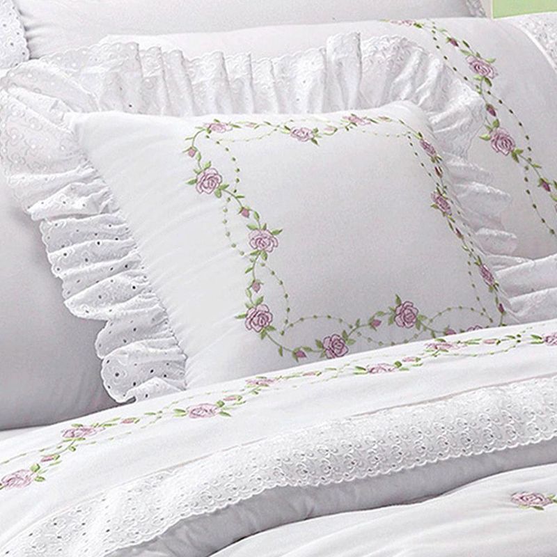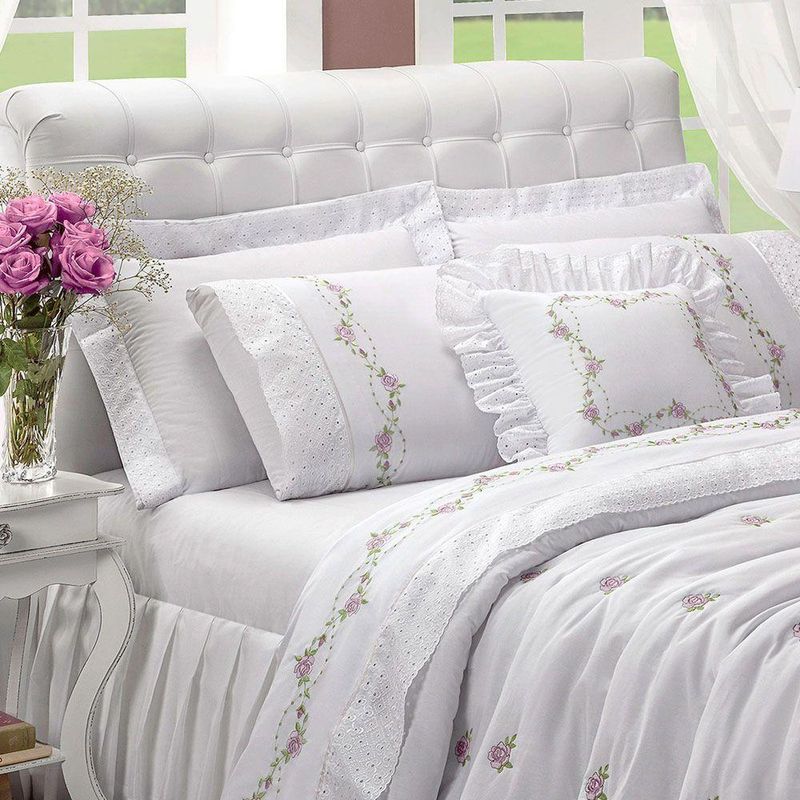Kit Cobre Leito Bristol Queen Percal Bordado 180 Fios C/ Jogo Lençol 10 Peças - Branco Floral