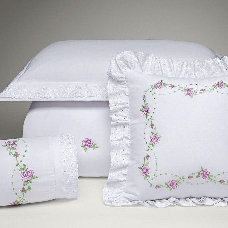 Kit Bristol confeccionado com tecido Percal 180 Fios de alta qualidade com lindo matelado, bordado delicado floral com detalhe em lese, peças que trazem leveza, conforto e glamour ao ambiente.Contém na embalagem: