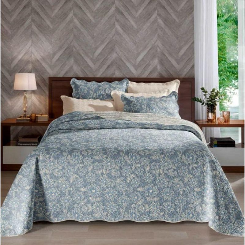 Cobre Leito Buettner Casal Microfibra Renove Estampado Paulina 3 Peças Azul