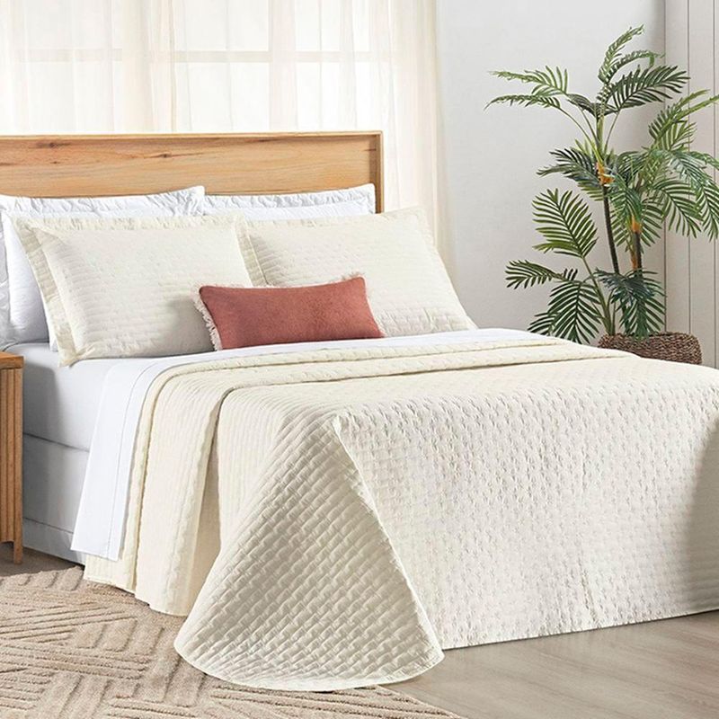 Cobre Leito Casal Padrão Verity 200 Fios Bordado 3 Peças - Palha