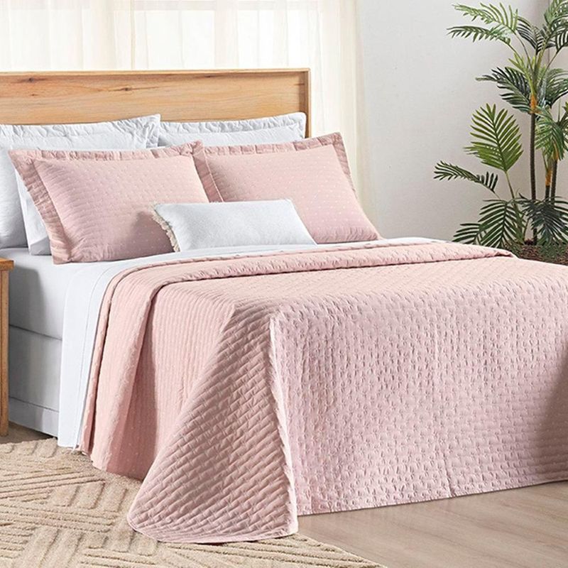 Cobre Leito Casal Padrão Verity 200 Fios Bordado 3 Peças - Rosa