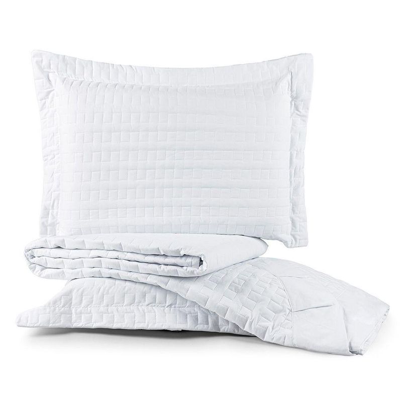 Cobre Leito Colcha Padrão Milano 3 Peças Branco - 100% Poliéster