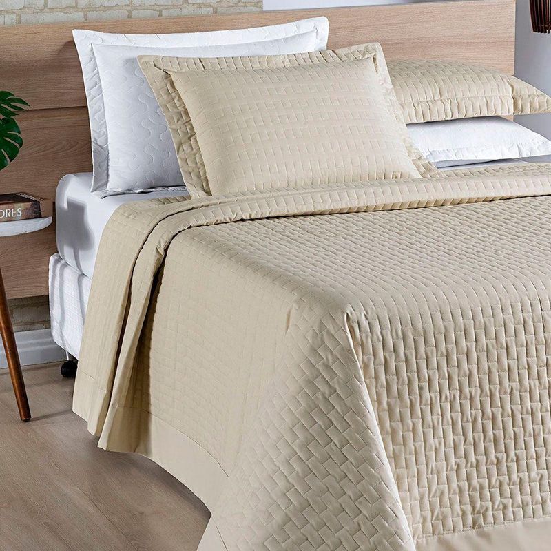 Cobre Leito Colcha Queen Milano 3 Peças Cáqui - 100% Poliéster