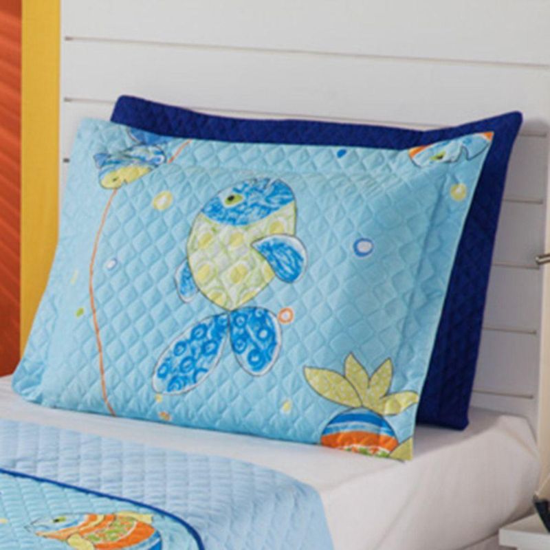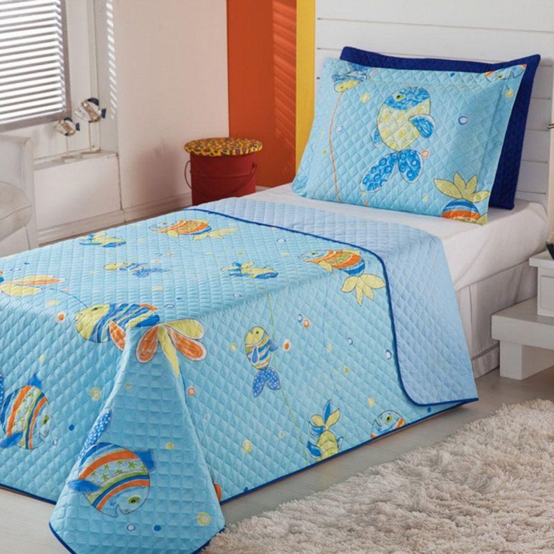 Cobre Leito Colcha Solteiro Alegria 2 Peças Oceano - Azul - 100% Poliéster