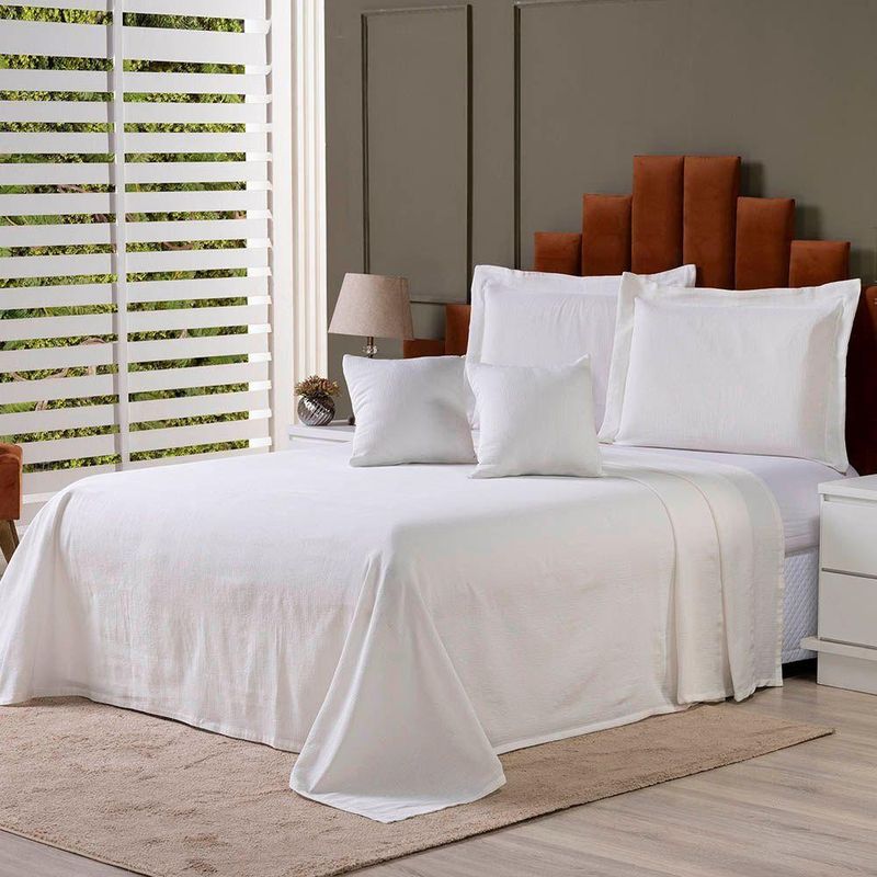 Kit Cobre Leito Colcha Usual King 5 Peças Tecido Rústico C/ Almofada - Palha - 60% Algodão / 40% Poliéster