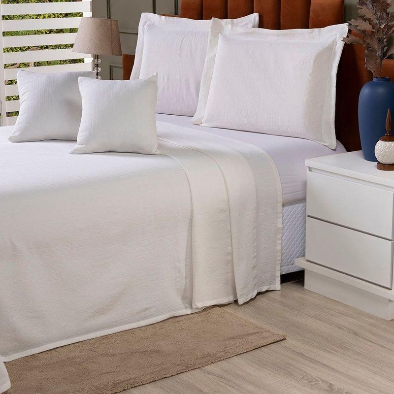 Kit Cobre Leito Colcha Usual Queen 5 Peças Tecido Rústico C/ Almofada - Palha - 60% Algodão / 40% Poliéster