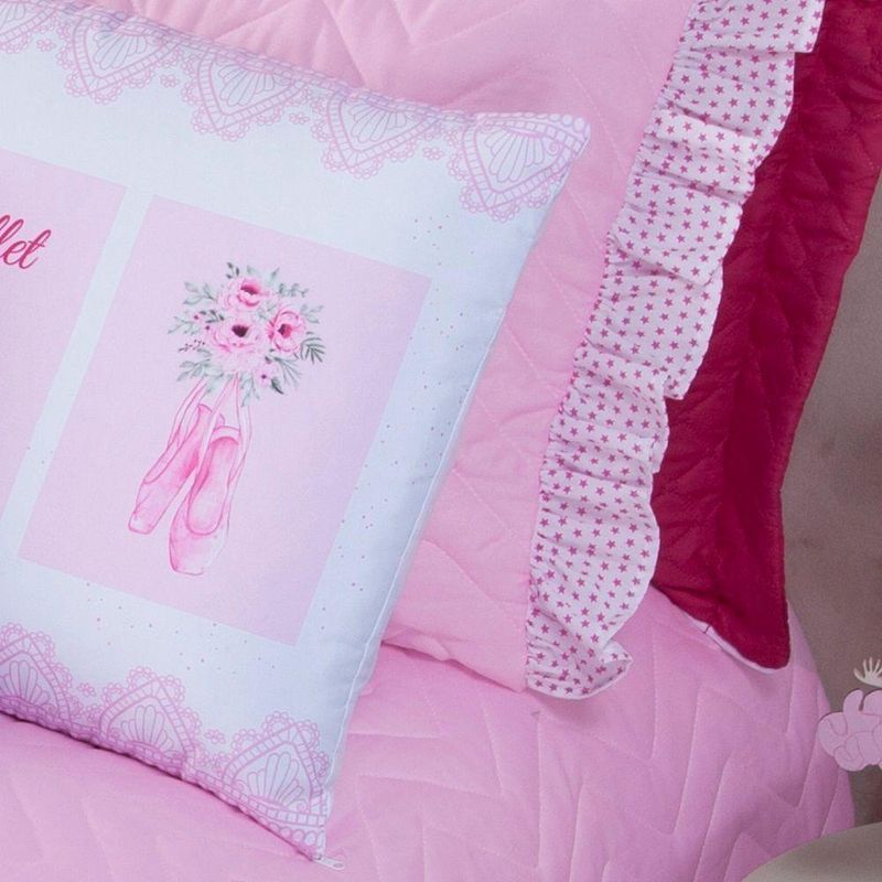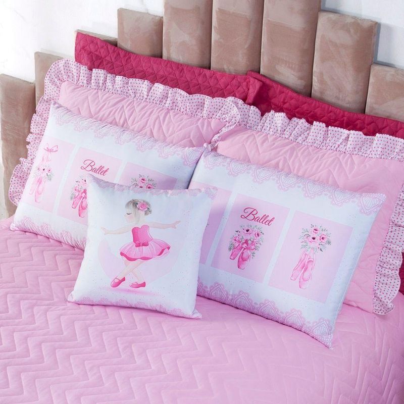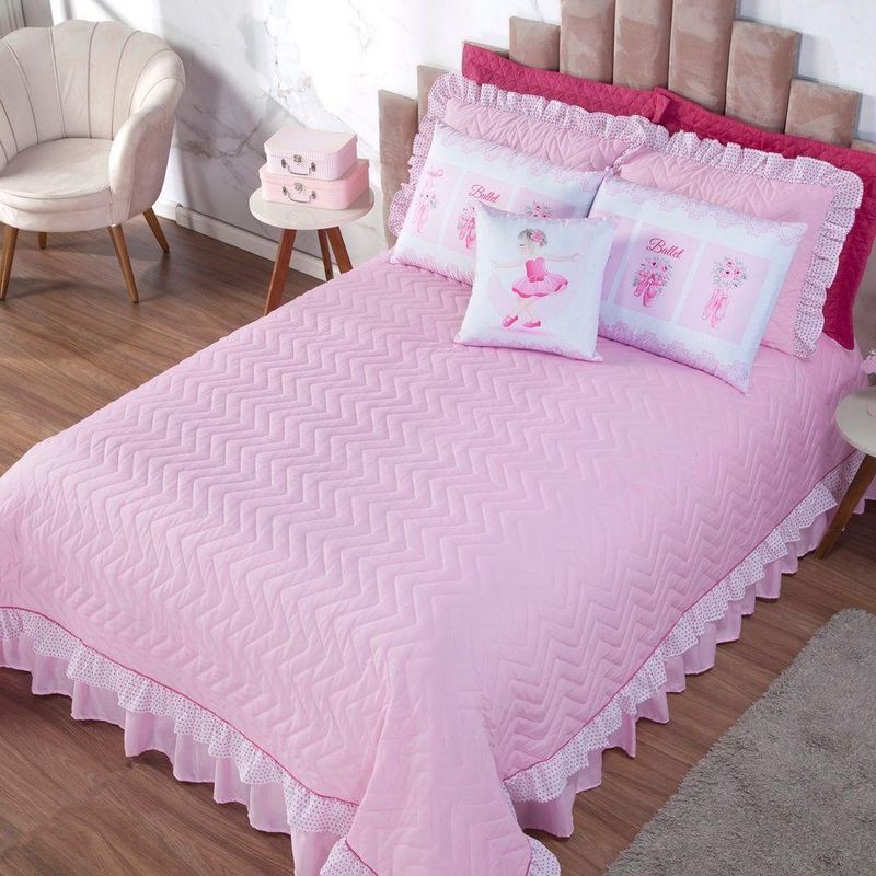 Cobre Leito Com Babado Bordado Ballet Queen 7 Peças - Rosa